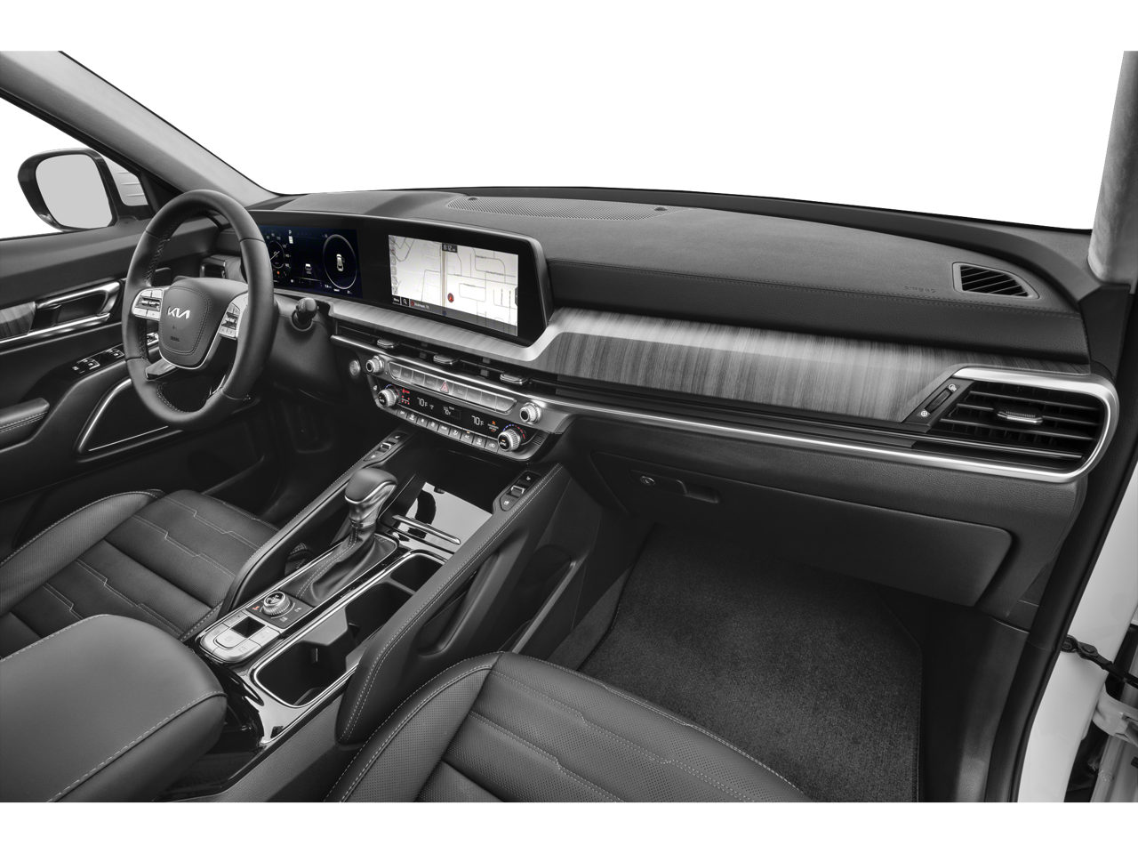 The installed navigation system will keep you on the right path. This Kia Telluride offers Android Auto for seamless smartphone integration. Protect this unit from unwanted accidents with a cutting edge backup camera system. This unit's Lane Departure Warning helps keep you in your lane. Apple CarPlay: Seamless smartphone integration for the vehicle - stay connected and entertained on the go! The leather seats in the vehicle are a must for buyers looking for comfort, durability, and style. Start this 1/2 ton suv from inside with remote start. The vehicle employs advanced tech for collision avoidance, enhancing safety on the road. This unit features a hands-free Bluetooth® phone system. Keep your hands warm all winter with a heated steering wheel in it . It has an elegant black exterior finish. This model is equipped with all wheel drive. Load groceries and much more with ease into this model thanks to the power liftgate.