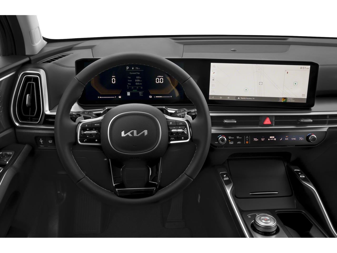 - Radio: AM/FM/SiriusXM Audio System -inc: 12.3" ccNc touchscreen, HD Radio, modem, navigation, over-the-air updates, Kia Connect, Wi-Fi hot spot, 6 speakers, Bluetooth®, voice recognition, wireless Apple CarPlay, wireless Android Auto and USB connectivity